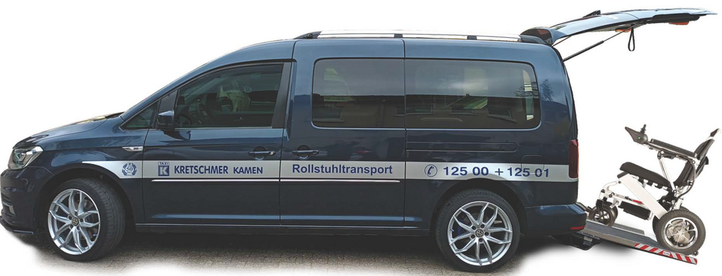 Fahrten mit einem Rollstuhl-Taxi werden mit unserem Spezialfahrzeug durchgeführt. In unserem Rollstuhl-Taxi können Fahrgäste im Rollstuhl sitzend über eine Rampe ins Fahrzeug befördert werden. So kann der Fahrgast in seinen Rollstuhl sitzen bleiben, während er sich in das Taxi begibt.